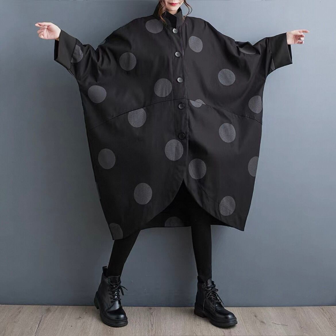 オーバーサイズ ドット柄ミモレ丈 コート D00010
