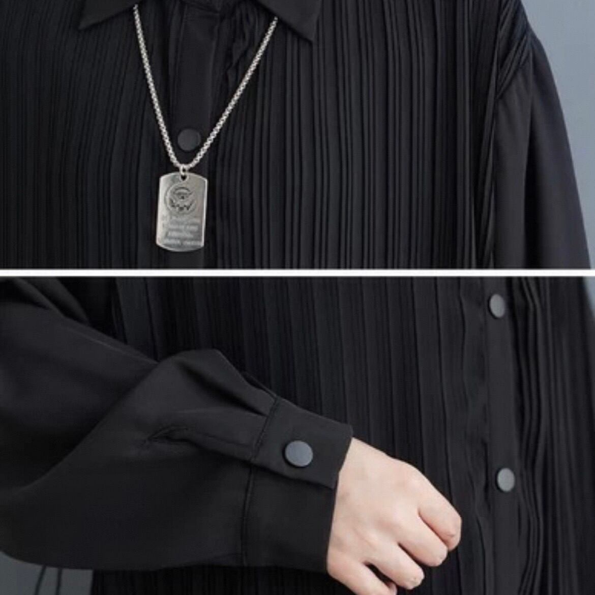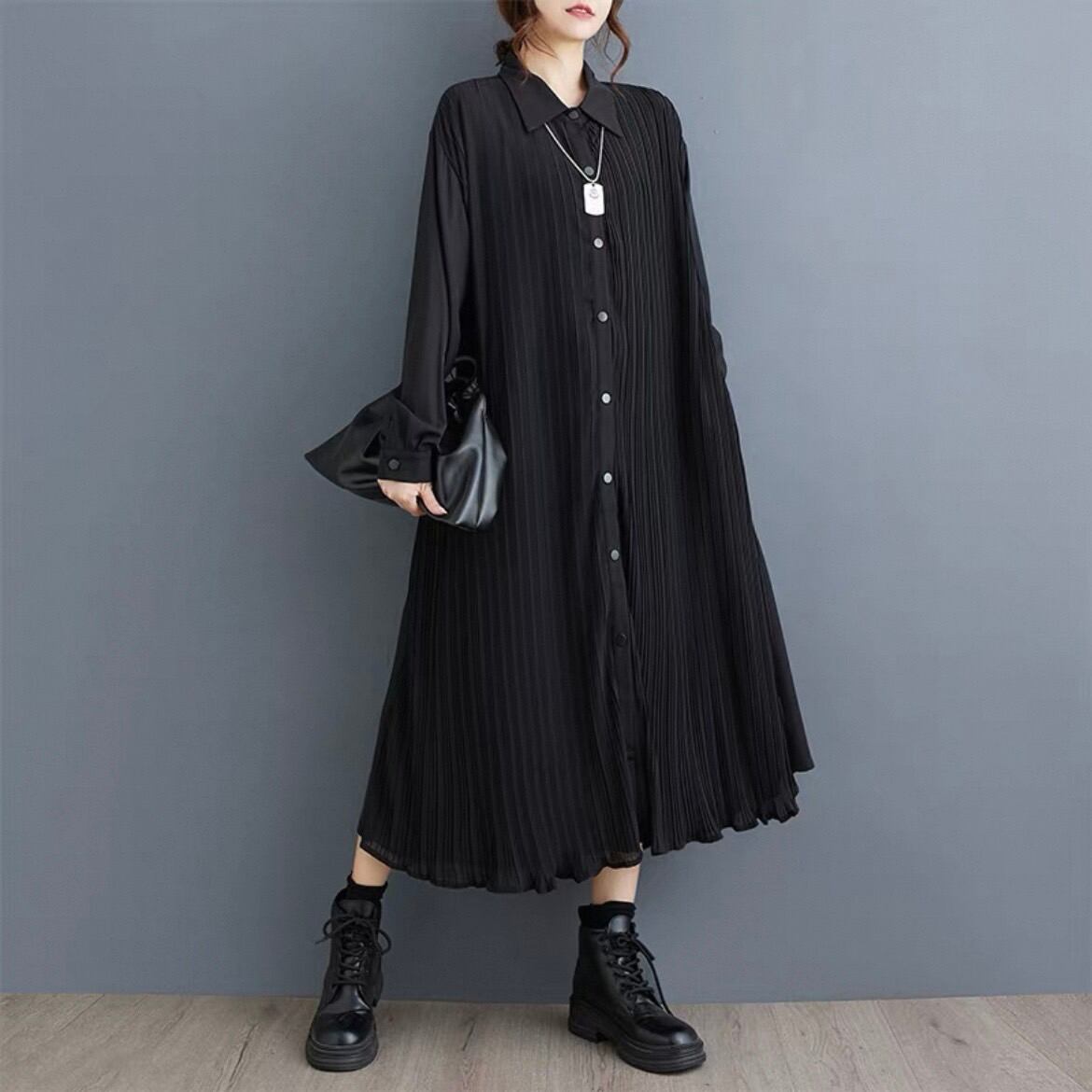 プリーツ切り替え ミモレ丈 シャツワンピース D00035