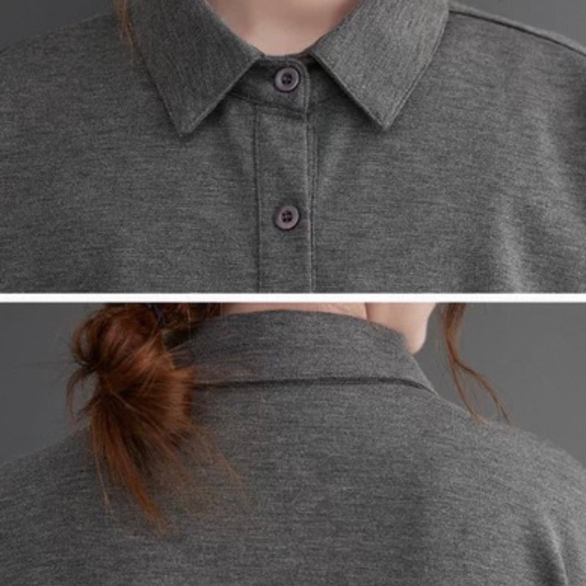 胸元にはきちんと感を演出するボタンが施されており、様々なシーンで大活躍