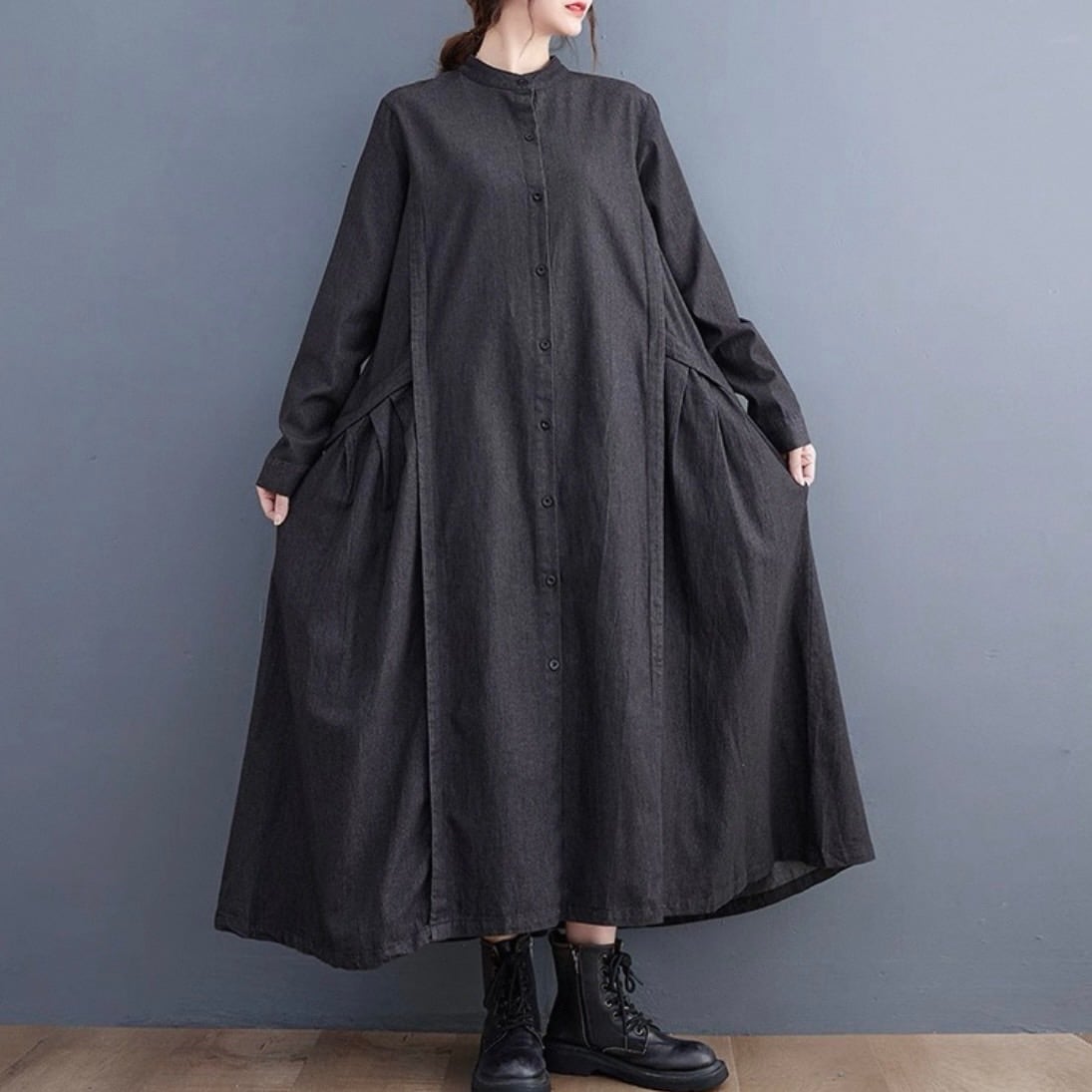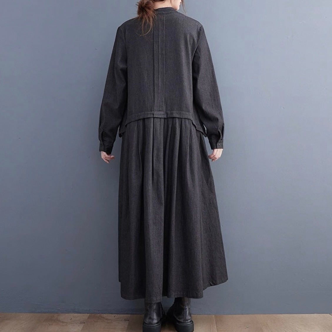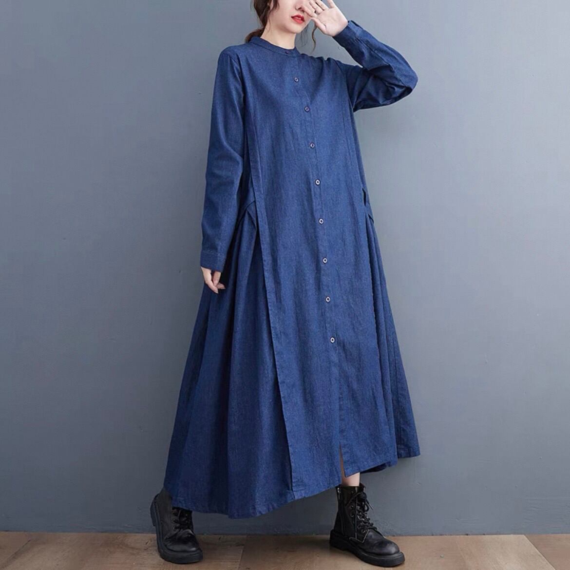 プリーツデニムワンピース D00060