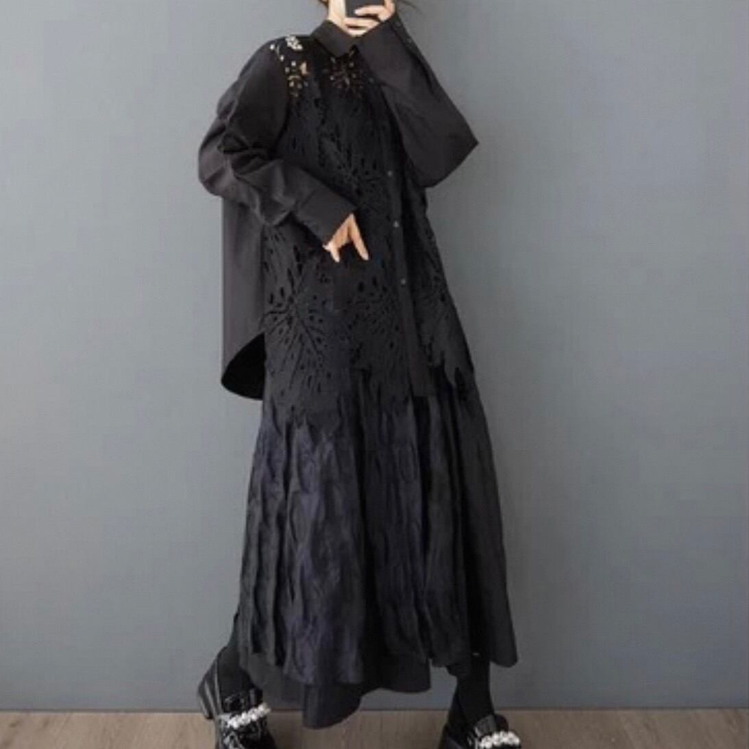 イレギュラーヘムのデザインシャツはシンプルなボトムスと相性抜群