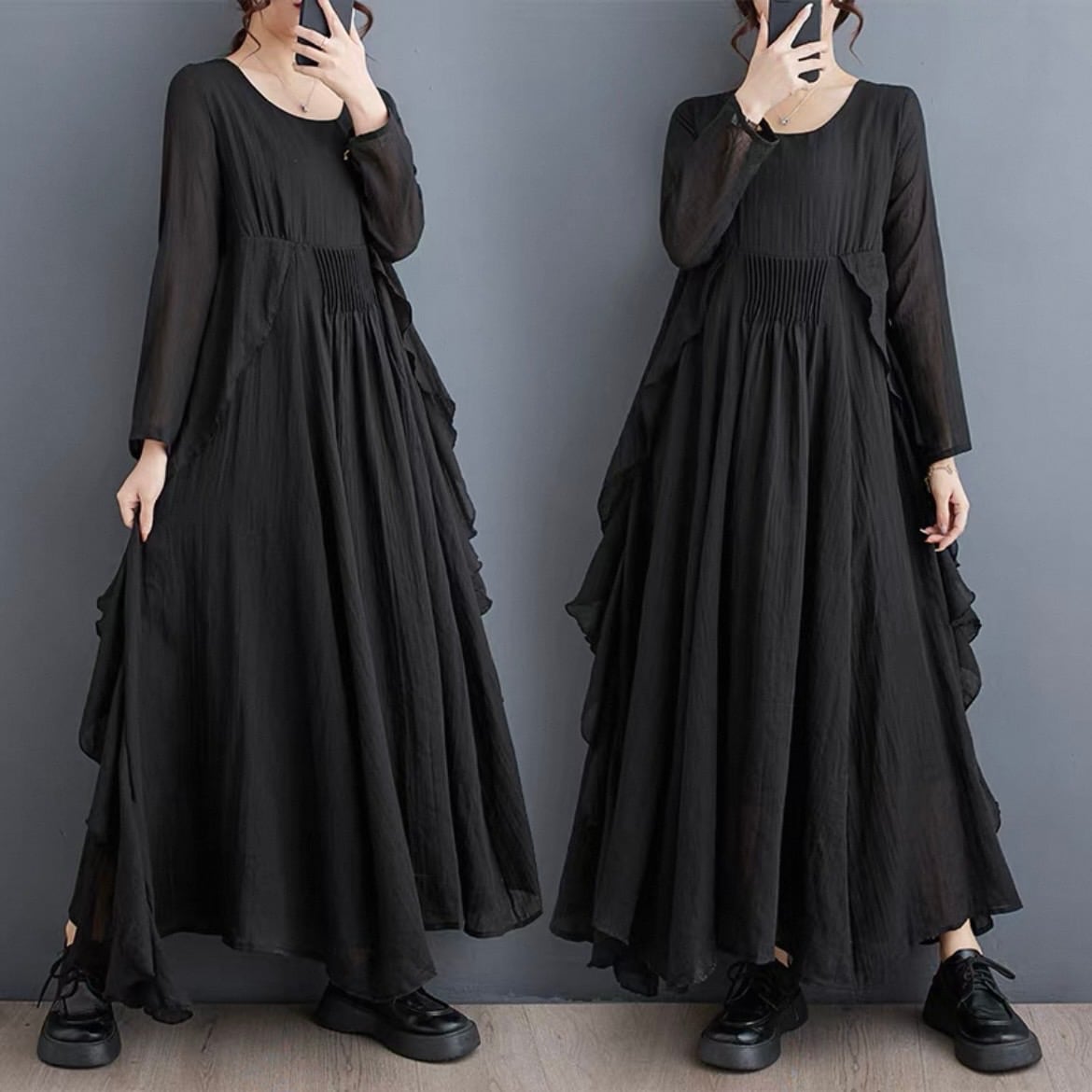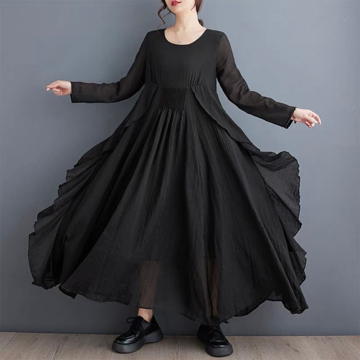 プリーツフリルワンピース D00075