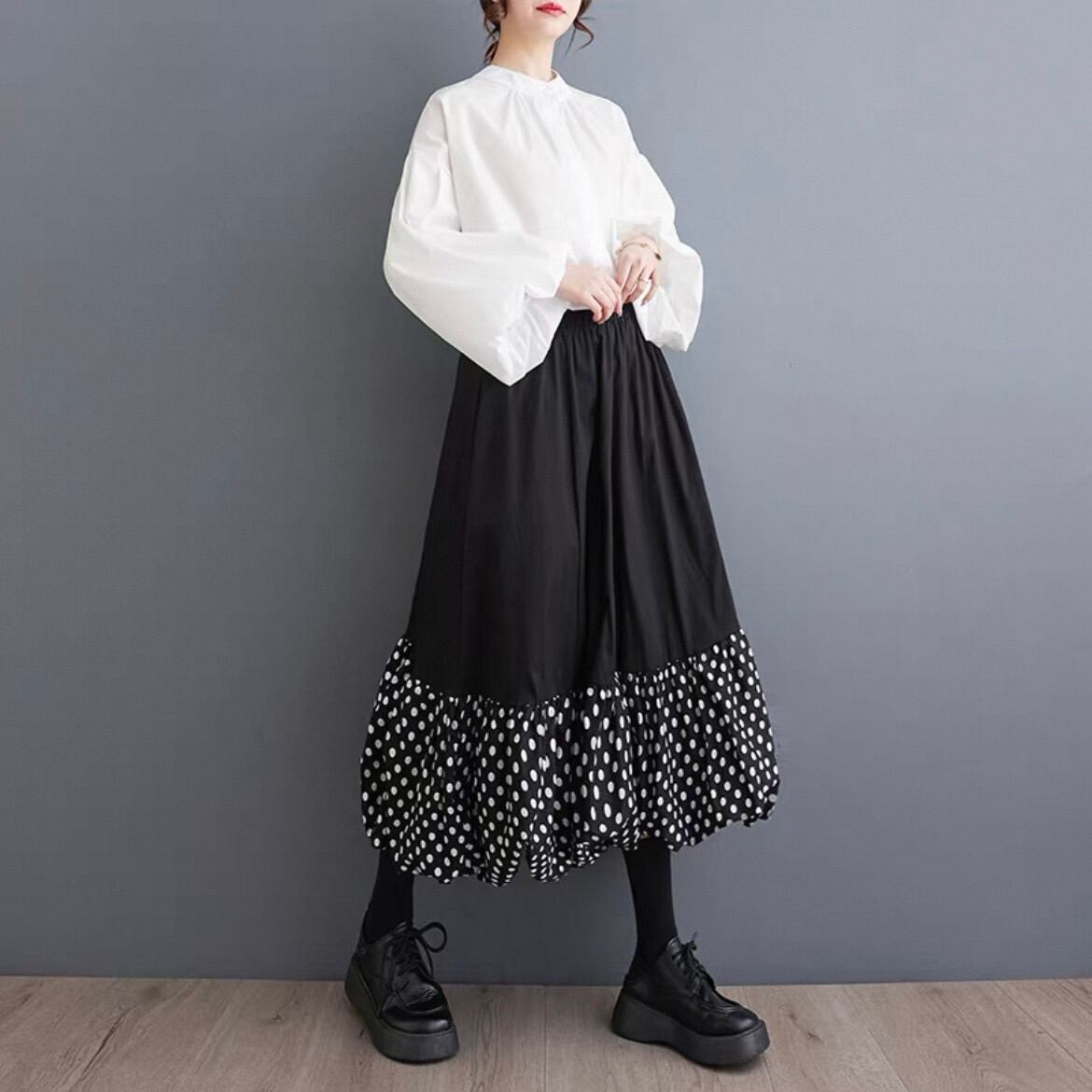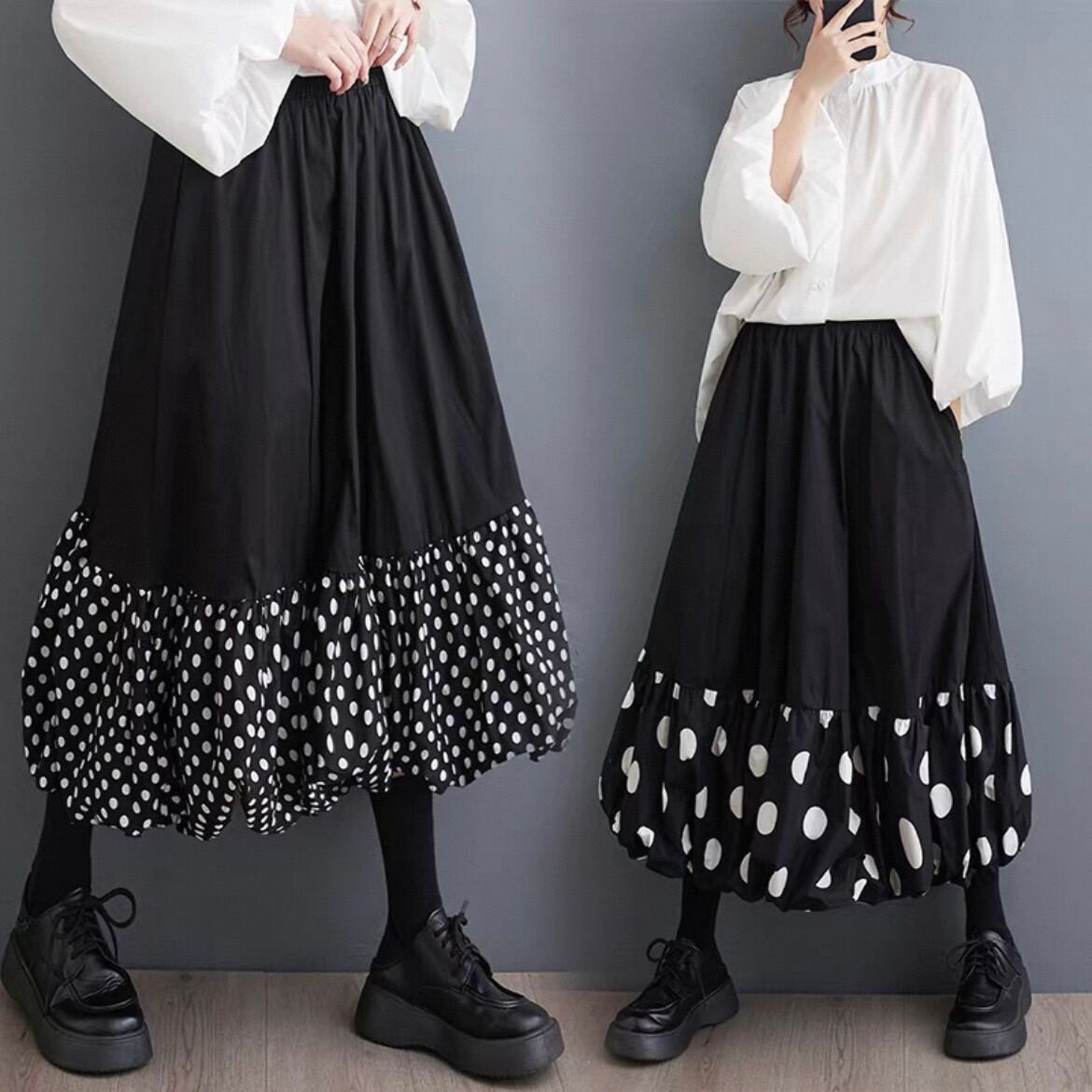 ドット柄がかわいらしさを引き立て、コーディネートにアクセントを加えます